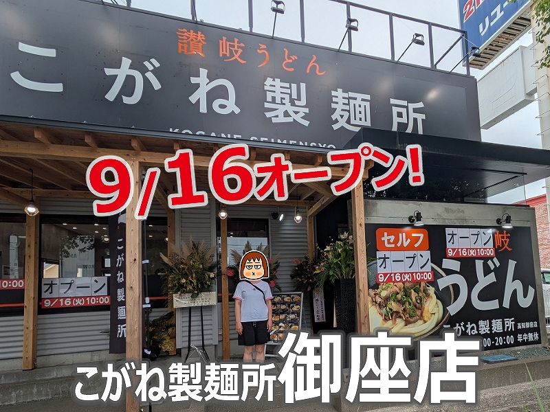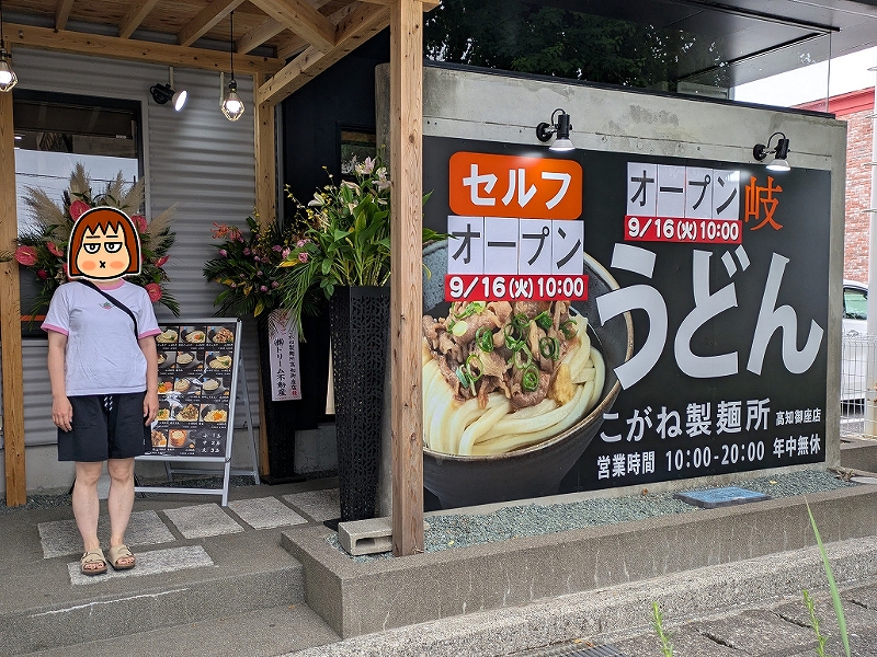 高知市御座に、9/16に、こがね製麺所が新規オープンしました。秋分の日で休みでしたので、お昼ご飯は近所で軽く済ませたくて、うどん屋さんへ。