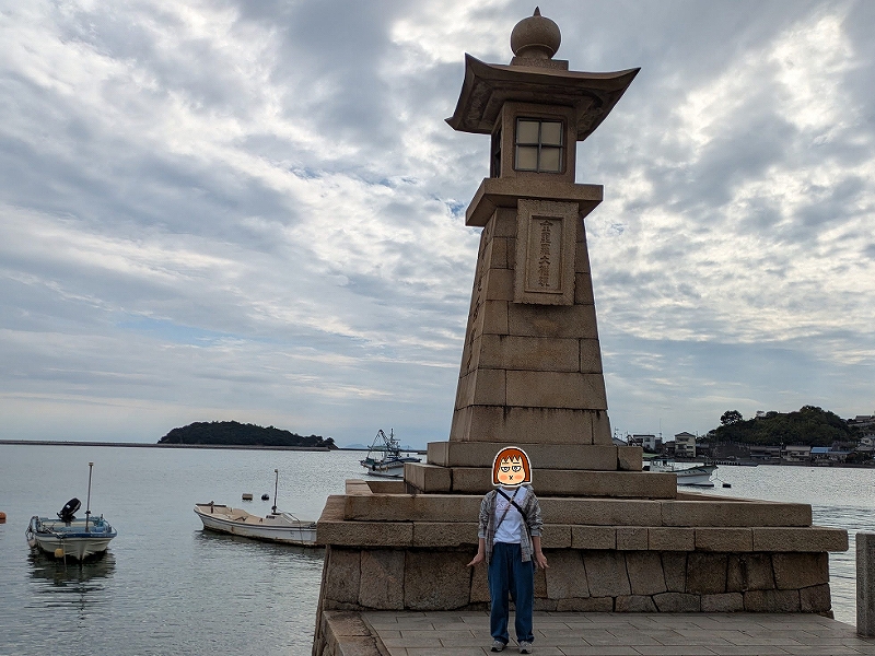 鞆港西側の雁木の南側に立つ常夜燈。鞆の浦のシンボルだそうです。 現存する江戸時代の常夜灯としては最大級の大きさ。