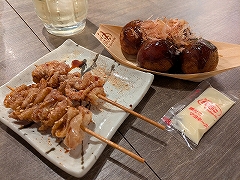 とり皮とたこ焼きは普通ですが、ねぎが苦かった。。