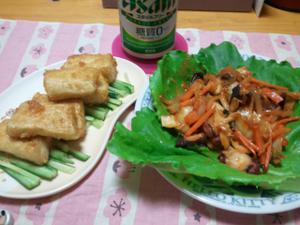 一昨日のヤンニョムとキムチが残っていたので、タコの辛子炒めを作りました。あとは、豆腐があったので、豆腐ステーキに挑戦です。今日もクックパッド先生最高です!