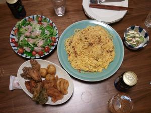 カルボナーラとカルパッチョを用意してくれていて、カルボナーラがしっかりした味付けでツイツイ食べ過ぎてしまいました。