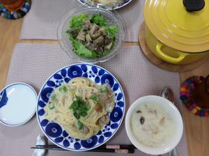 クラムチャウダーのクラムは、ハマグリだそうです。なので、ホタテチャウダー。ベビーホタテが安かったので、このような形になりました。味も予定通りでGood!!