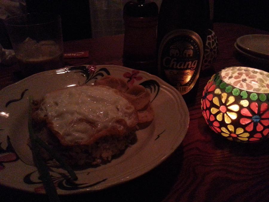 僕が大変上機嫌だったので、ふたりで飲みに行くことになりました。お店はもちろん奥様セレクト。写真は暗くてわかりにくいですが、大変美味しかったです。僕はパクチーがやっぱり苦手ですね。