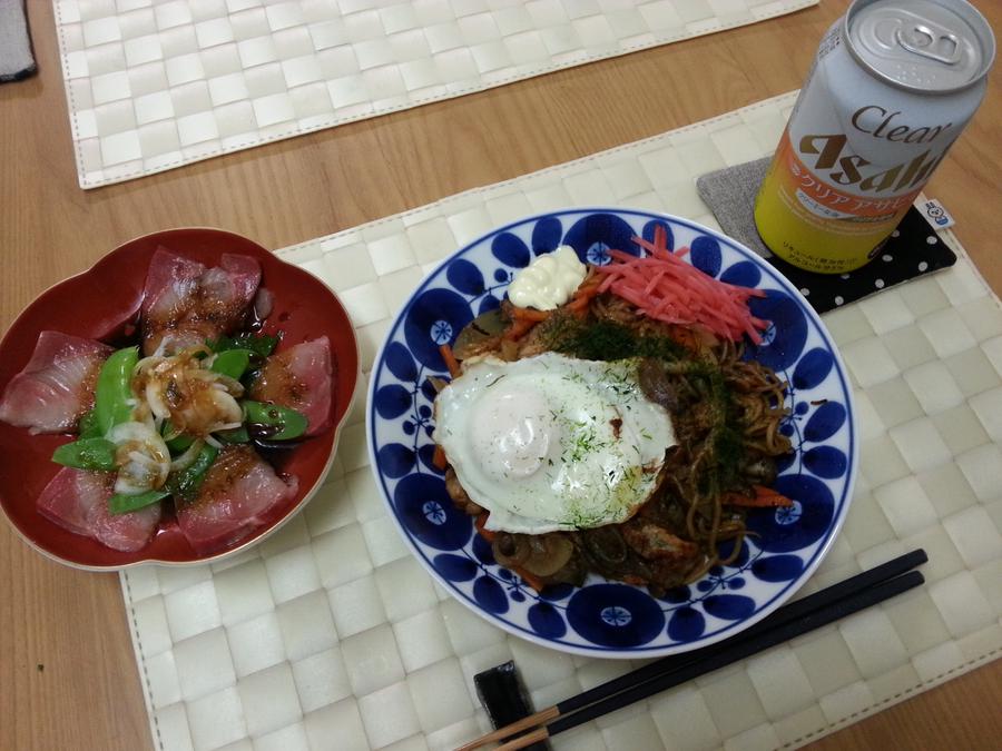焼きそばとブリのカルパッチョ