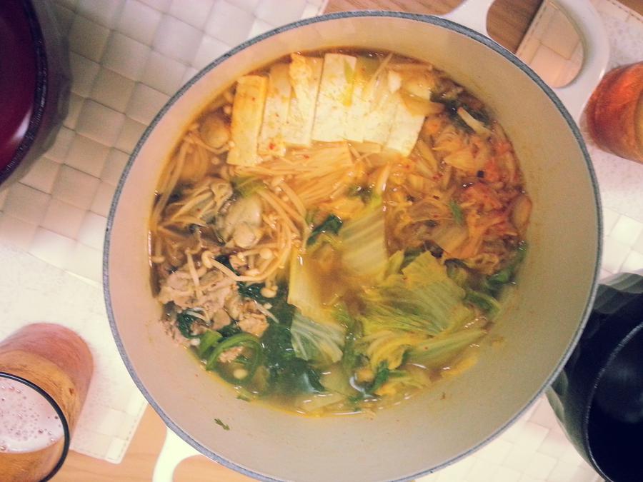 この写真は、なんだか変ですが、味は全く問題なし。ベリーグッドでした。春菊も熱を加えて美味しくなりました。