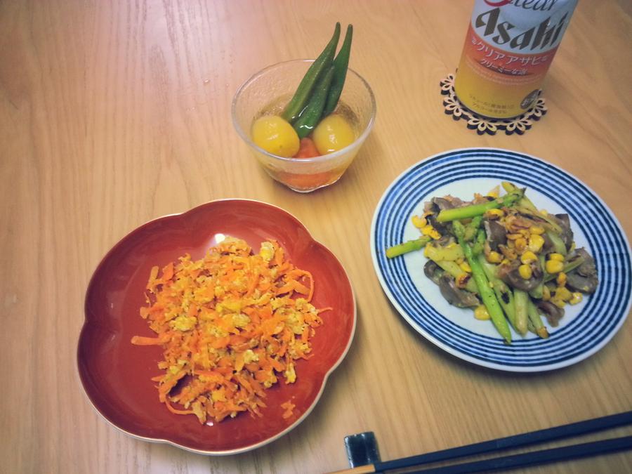 アスパラと砂肝とコーン炒め