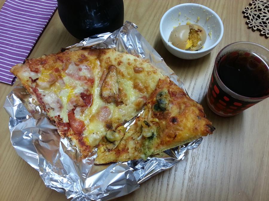 ピザは、真ん中のニンニクが効いたやつが美味しかったです。