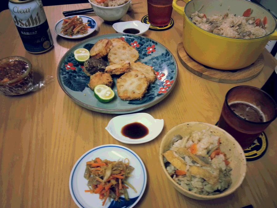 2013/09/23 鮭とイクラの親子丼とレンコンの挟み焼き
