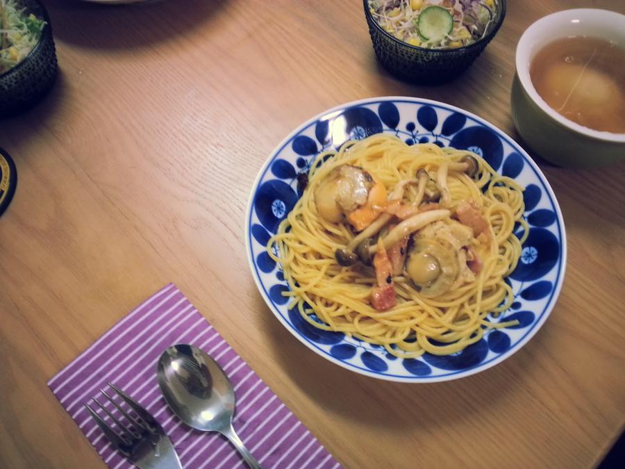 ホタテとしめじのパスタ