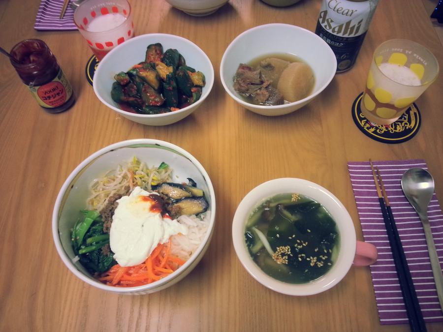 今日はナムルとオイキムチを買って、お家でビビンバにしました。