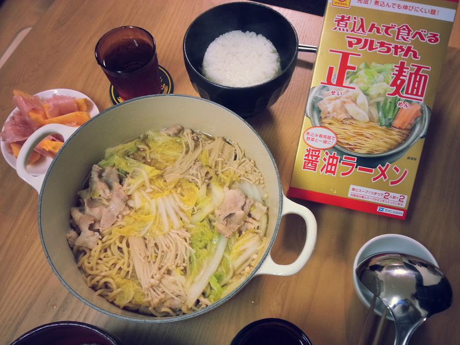 あと、マルちゃん正麺というのは「マルちゃん正麺」というブランド名?。思ってたのと違う感じ。結構太め麺だった。