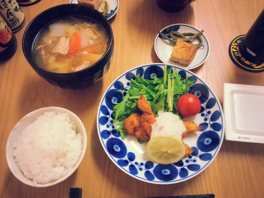 こんばんは、ワカメの味噌汁にするつもりだったけど、豚汁に変更。