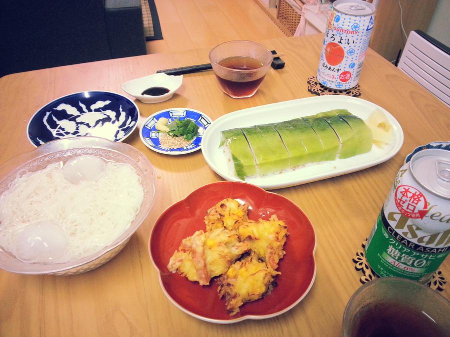 夕飯はお総菜と今年初の素麺!お腹いっぱい。