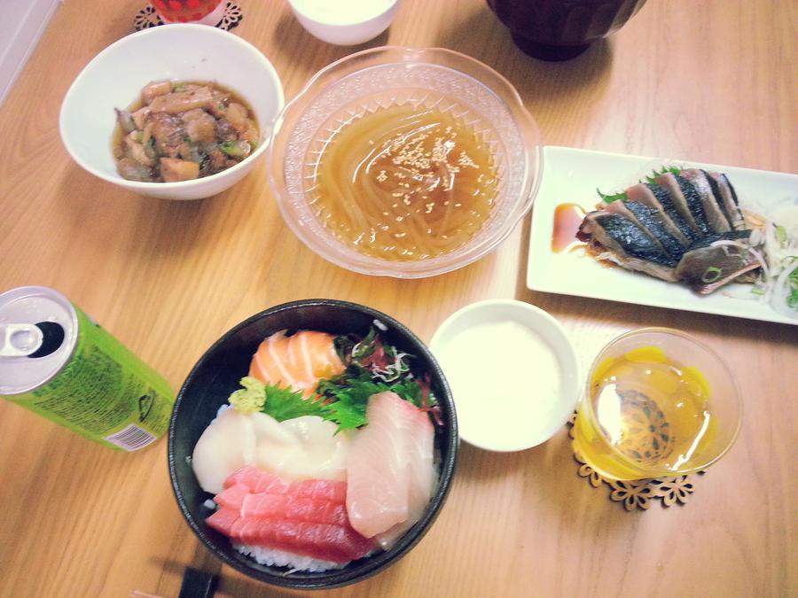 海鮮丼のお刺身は全部半額なんだよ。素敵だね。