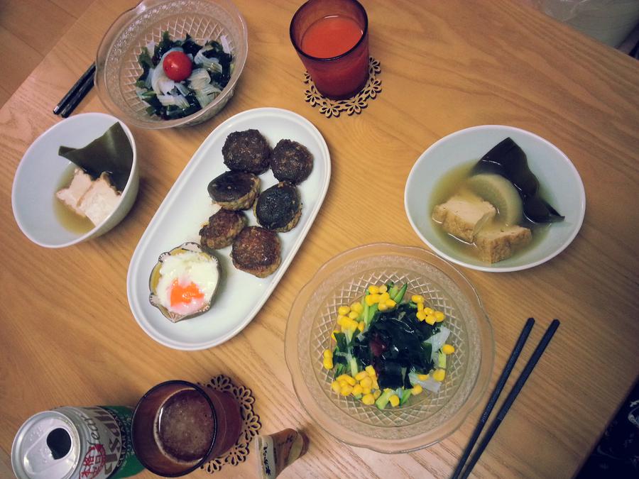 夕飯は練習後だったので、作り置きしてた『塩麹入りつくね』と、蒟蒻サラダ。