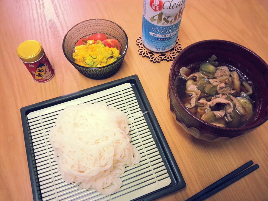 はい、毎年作ってます、茄子と豚バラのそうめん。